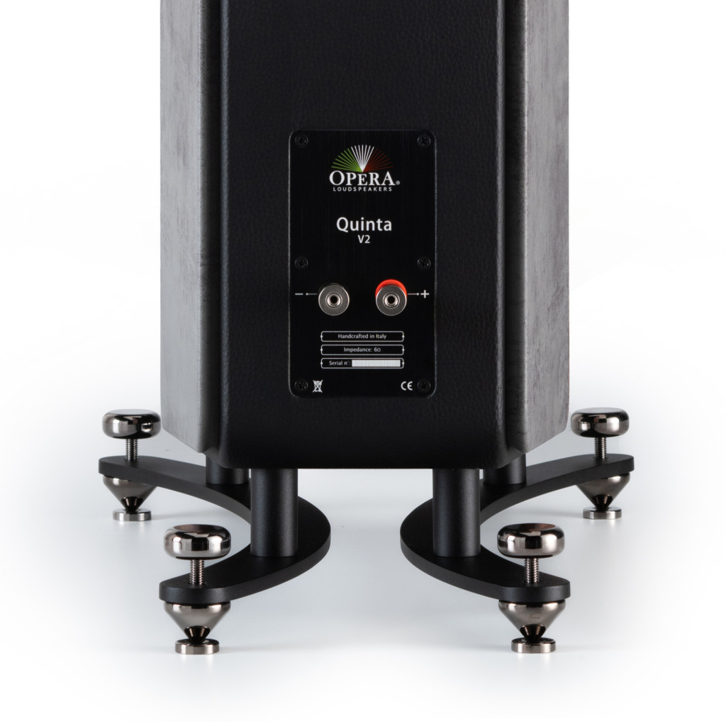 Az új Opera Quinta a korábbi modellnek a továbbfejlesztése. A hangszóró egyes összetevőinek gondos tanulmányozásának köszönhetően sikerült túllépni a 87-88 dB-es érzékenységi határértéket, sőt elérve a 91 decibelt, ami kiváló dinamikát és nagyon lineáris teljesítményt garantál még magas jelszinteken is. A visszafogott fázisforgatásnak köszönhetően az erősítő által látott terhelés egyáltalán nem tűnik kritikusnak, ami még korlátozott teljesítményű erősítőkkel is jó vezethetőséget garantál.